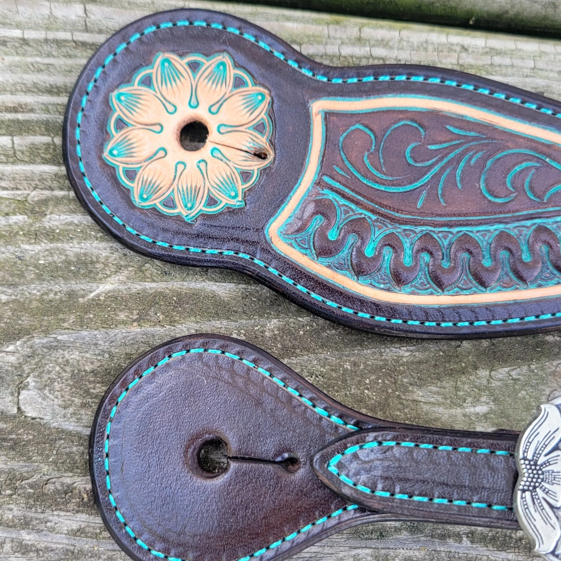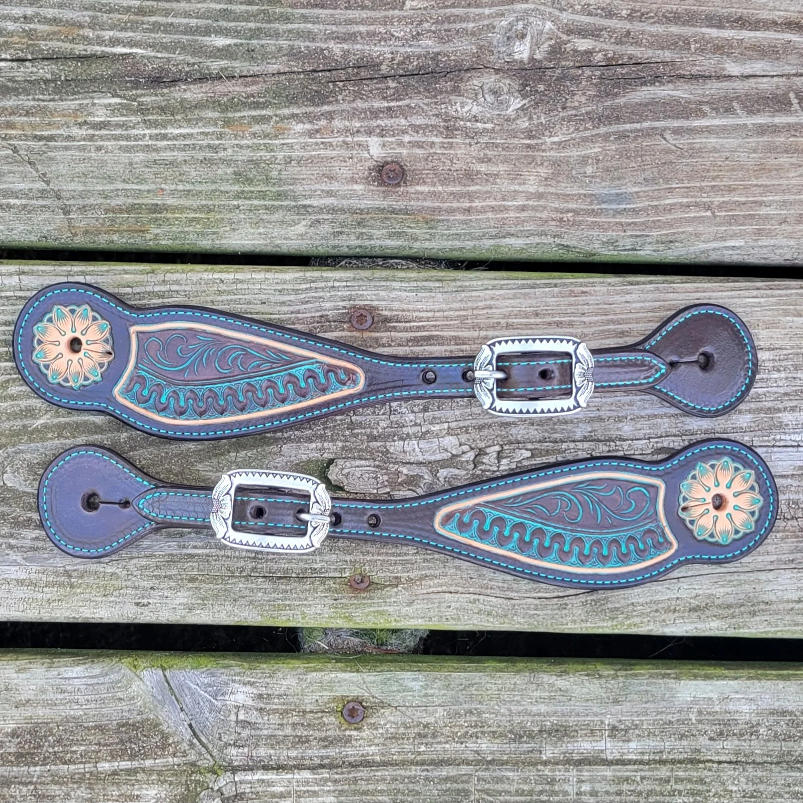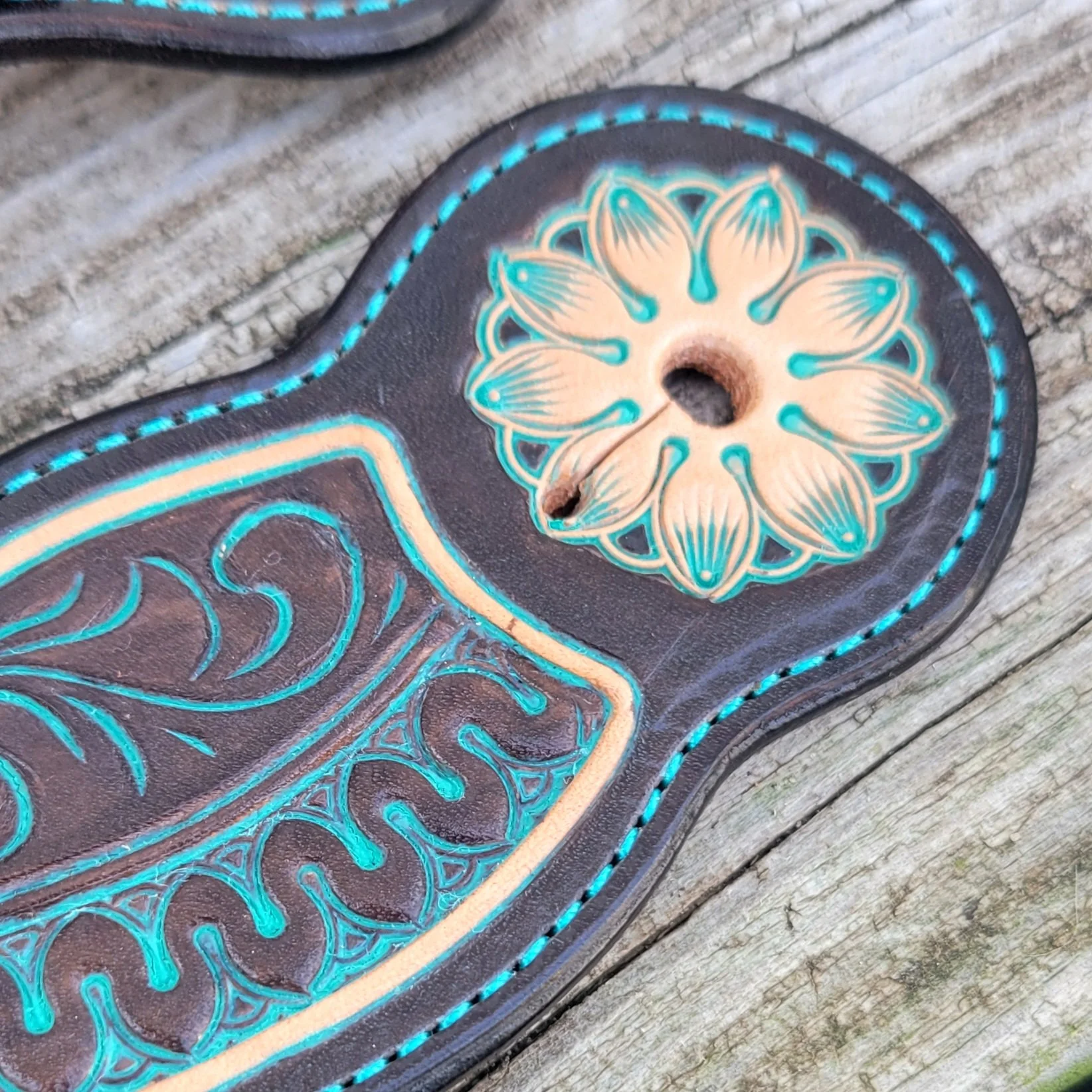 Spur Straps Turquoise Shadow $116.00 Spur Straps - Floral Tooled Sale Price: $212.39 Original Price: $304.59 Sale